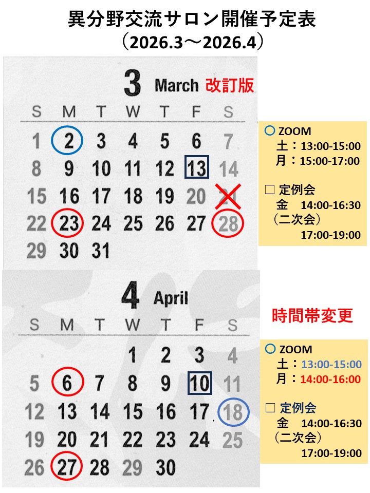 *4月から月曜会の時間帯を1時間繰り上げます。